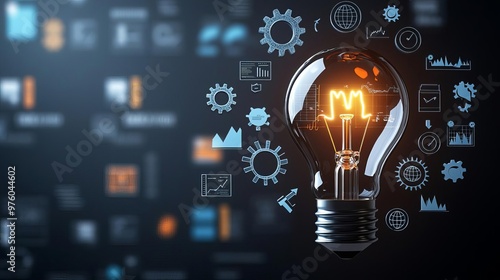 Creative Business Concept Branding Goals Lightbulb with gears and charts, symbolizing creative business concepts and branding, no face, flat design illustration