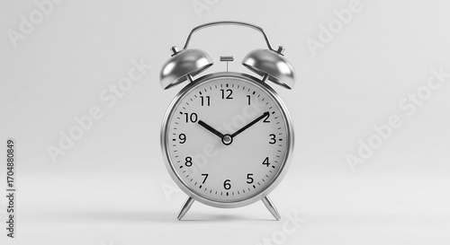 シンプルデザイン 銀色目覚まし時計 柔らかな光 静寂な時間. AI Generated
