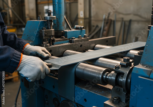 A Worker Feeding a Metal Sheet into a Machine