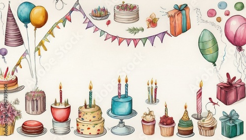 birthday decorations drawings white backgraund