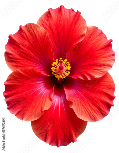 Bright Red Hibiscus Flower in Top View with Yellow Stamen – PNG Isolated