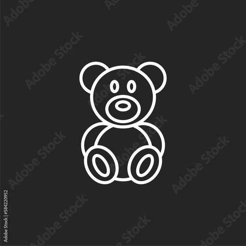 Cute smiling teddy bear line icon isolated on black background