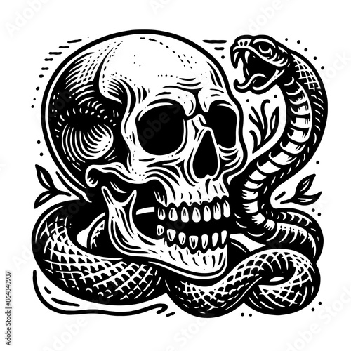 Simple Vector Illustration Skull and snake Tatoo style