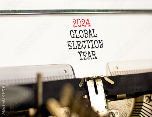 2024 global election year symbol. Concept words 2024 global election year typed on beautiful old retro typewriter. Beautiful white background. Business 2024 global election year concept. Copy space