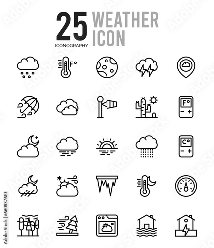 25 Weather Outline icons Pack vector illustration.