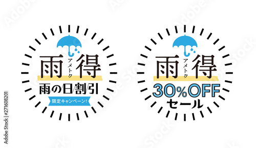 「雨の日の特典」販促素材:雨得、雨の日割引、30%offセール・日本語版