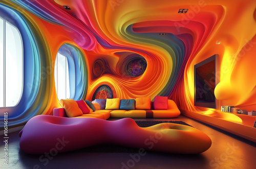 3D Abstract Living Room: Modern Futuristic Apartment with Dreamy Fractals and Virtual Interior Design for a Unique Living Space