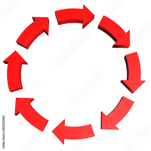 3D Eight rotating arrows (Top view) isolated on transparent background.