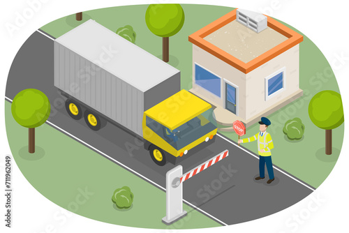 3D Isometric Flat Conceptual Illustration of Security Check Of Car , Entry Through the Checkpoint