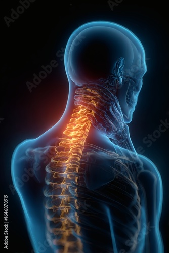 3D rendered illustration of a man's X-ray showing a painful spinal joint injury