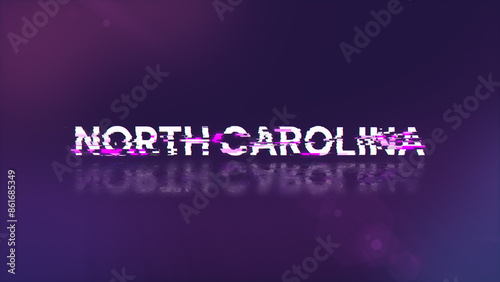 3D rendering North Carolina text with screen effects of technological glitches