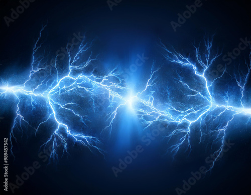 3D rendering of blue lightning on a dark background