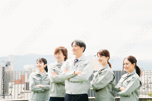作業着をきた会社員(屋上・5人)