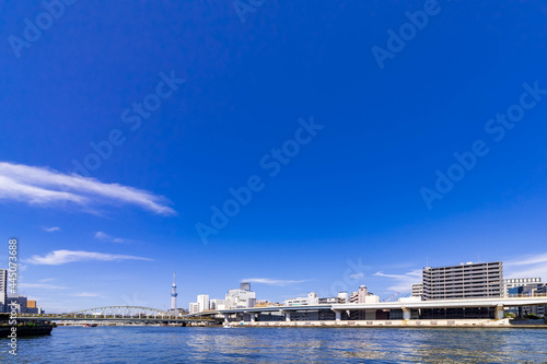 東京都市風景 隅田川 青空 7月
