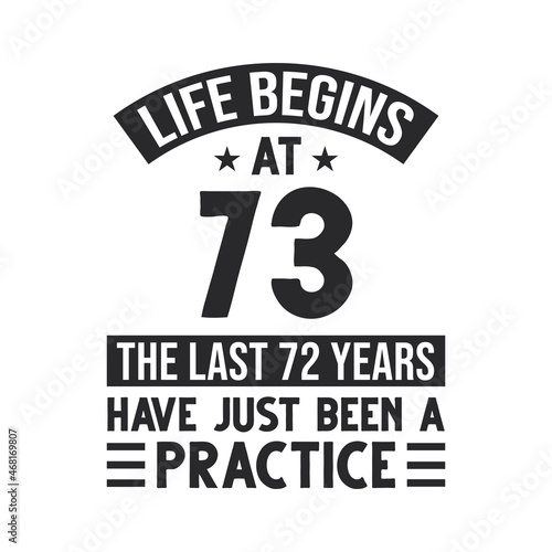 73rd birthday design. Life begins at 73, The last 72 years have just been a practice