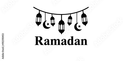 A beautiful Minimalist and Spiritual Silhouette graphic design capturing the festive essence of Ramadan with traditional Fanoos lanterns and crescent moon symbols for greeting cards.