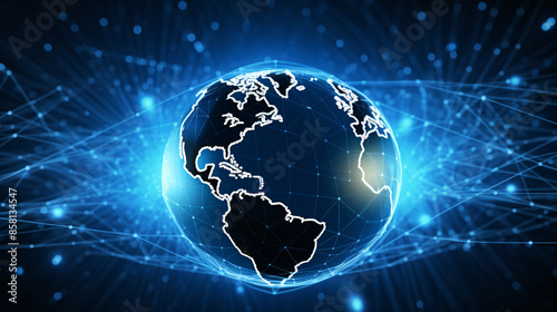a blue glowing globe with lines and dots around it
