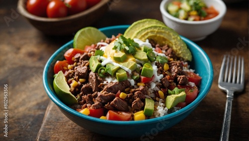 A bowl of beef burrito bowl