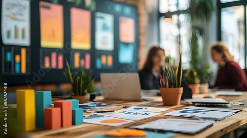 A business discussion among a diverse group of professionals, using visual aids to support collaboration and teamwork in achieving goals.