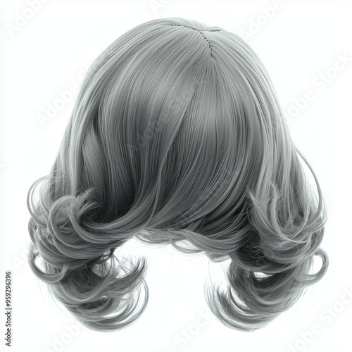 A classic bob wig for elderly women, with gentle curls and a silver-gray hue, isolated on a white background