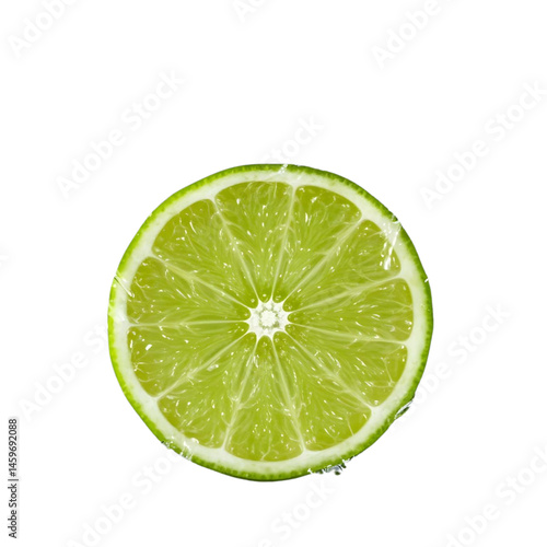 A clean slice of lime with a splash of water, isolated on a transparent PNG background, dynamic motion blur, capturing the freshness and movement