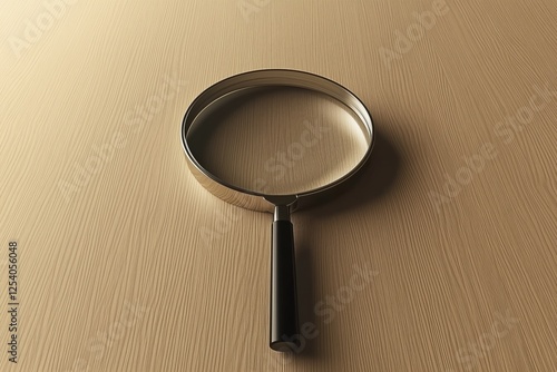 A close-up of a magnifying glass resting on a textured wooden surface.