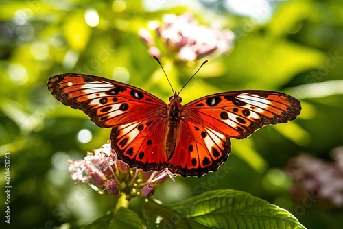 A closeup shot of a lovely butterflies with big wings sitting on a flowe
