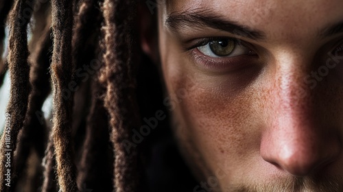 A close-up shot of a person with colorful dreadlocks, ideal for use in portraits, music or cultural-themed projects