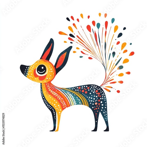 A colorful, artistic illustration of a playful dog with vibrant splashes of color.