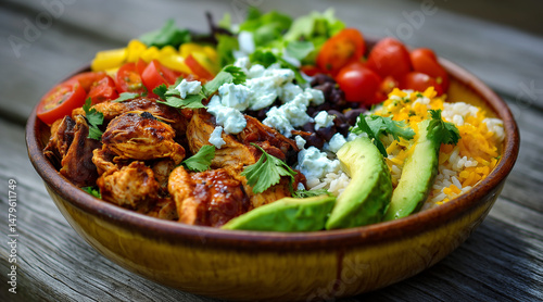 A delicious, irresistible picture of Chicken Fajita Burrito Bowl