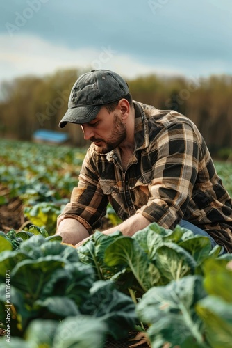 a farmer harvests vegetables