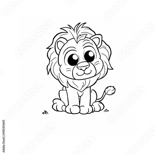 A funny little lion black line colouring page sketch isolated on white background