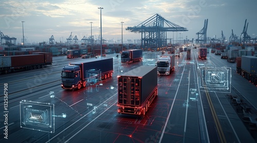 A futuristic scene depicting a highly automated and digitally integrated freight corridor