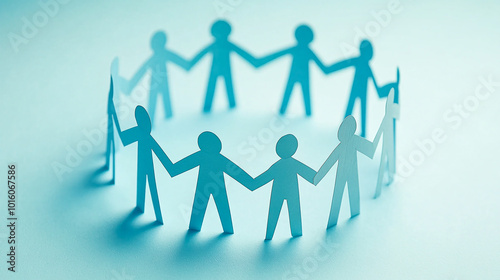 A group of paper people holding hands in a circle, demonstrating unity and teamwork, Mutual respect and understanding among team members