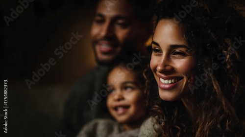 A happy multi ethnic family shares a moment of joy and connection in a warmly lit indoor setting