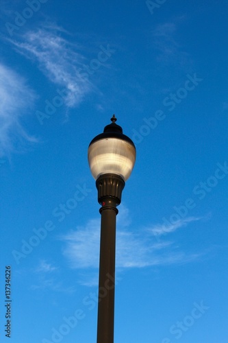 A light pole with the blue sky in the background.