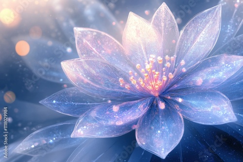 A luminous, ethereal flower radiating soft colors and sparkles.