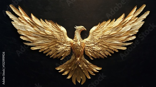 A majestic golden bird sculpture with outstretched feathered wings displayed