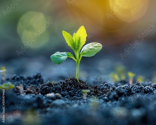 A new sprout pushing through the earth, fresh and inspiring, Nature, Soft greens, Photograph, New beginnings