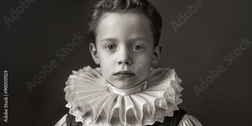 A portrait of a young boy in a black and white photo, suitable for use in nostalgic or retro-themed designs