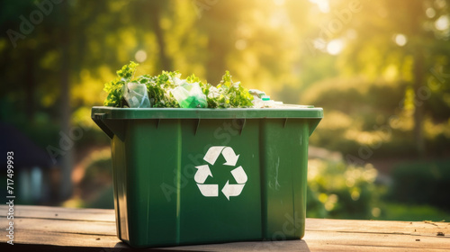 A recycling bin filled with garden waste emphasizes sustainability and responsible waste management.