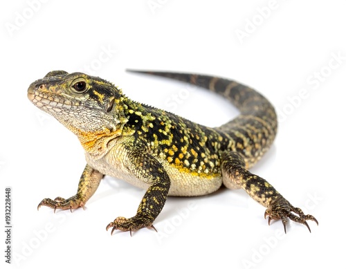 A reptile with a long tail and spotted skin