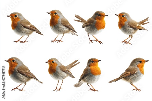 A robin's collection of standing, flying, and portrait birds. Generative Ai