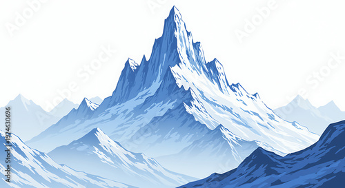 A serene pixelated mountain landscape in shades of blue and white, evoking a sense of calm.