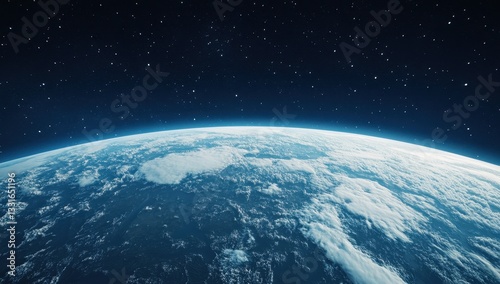 A side angle view shot of planet Earth from a vast starry outer space filled with stars and other planetaries, astronomy with science and technology