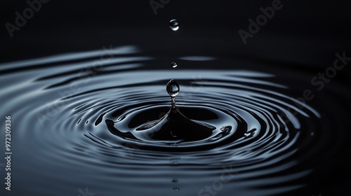 A single drop of water falls into a still pool, creating ripples and a splash.