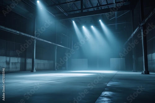 A soft gray empty studio with a gradient floor and spotlight backdrop is ideal for showcasing and displaying products