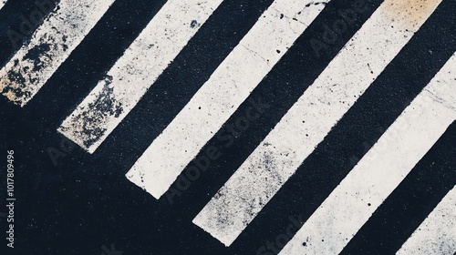 A top-down view of a pedestrian crosswalk on clean, dark asphalt