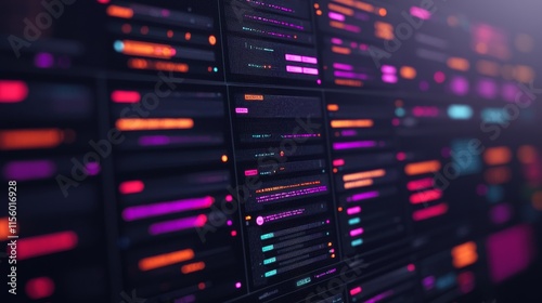 A vibrant, abstract representation of data streams with glowing lines and blocks, showcasing a futuristic digital landscape.