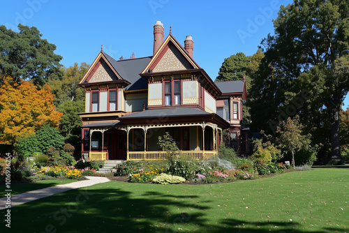 A vibrant celebration of local architecture in a beautifully restored Victorian home surrounded by colorful autumn foliage